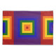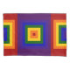 Show your love of colour with alternating geometric rainbows. A series of red, orange, yellow, green, blue, indigo, and violet squares radiate out from the centre of this festive design. On either side of the main square are halves of 2 rainbow squares with the colours sequenced in reverse order.