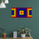 Show your love of colour with alternating geometric rainbows. A series of red, orange, yellow, green, blue, indigo, and violet squares radiate out from the centre of this festive design. On either side of the main square are halves of 2 rainbow squares with the colours sequenced in reverse order.