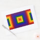 Show your love of colour with alternating geometric rainbows. A series of red, orange, yellow, green, blue, indigo, and violet squares radiate out from the centre of this festive design. On either side of the main square are halves of 2 rainbow squares with the colours sequenced in reverse order.