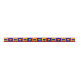 Show your love of colour with alternating geometric rainbows. A series of red, orange, yellow, green, blue, indigo, and violet squares radiate out from the centre of this festive design. On either side of the main square are halves of 2 rainbow squares with the colours sequenced in reverse order.