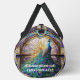 Put your custom phone number on the side of this bag in case it gets lost! This rainbow stained glass peacock duffel bag or gym bag is perfect for boho carrying your luggage on your next vacation or weekend getaway.