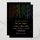 Informal LGBT wedding invitation with vertical star garlands in rainbow colours and gold foil against a dark background with a modern informal wedding wording and your names in a golden script.