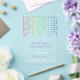 Informal acrylic LGBTQ wedding invitation with vertical star garlands in rainbow colours against a transparent background with a modern informal wedding wording and your names in a purple script and with a link to your wedding website for online RSVP.