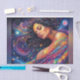Brighten your next creative project with this vibrant and magical decoupage paper. Featuring a serene goddess with her eyes closed, wrapped in a blanket of sparkling stars, this design explodes with colour in a whimsical, rainbow-infused style reminiscent of the 90s. Perfect for adding a fun and celestial touch to your crafts, this decoupage paper will inspire your creativity.