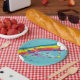 Beautiful personalised paper plate design featuring a rainbow, stars and clouds with an area for your text. The text is fully customisable.