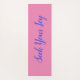 Vibrant rainbow pride workout mat with abstract pink, purple, and yellow stripes.