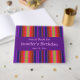 This colourful birthday party guest book is decorated with an abstract striped pattern in a spectrum of orange, purple, yellow, red, green, violet and black which resembles a beautiful rainbow. Easily personalise or remove the text.