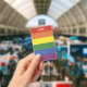 Colours of LGBT (lesbian, gay, bisexual, and transgender people) rainbow flag pride decoration on striped background