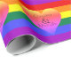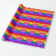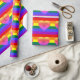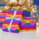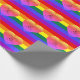 This colourful custom wrapping paper features a Pride theme with a rainbow stripe LGBTQ flag pattern. The typical rainbow colours, red, orange, yellow, green, blue, and purple, are printed in a striped pattern across the wrapping paper. Gradient hearts are printed across the stripes with sample names inside. You can personalise the couple's names to include your own names or other custom text.