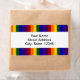 Red, orange, yellow, green, blue, indigo, violet: the colours of the rainbow are presented in vertical stripes in this design. The festive rainbow sequence repeats across the design.