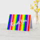 Classic rainbow stripes, vertical skinny stripes in colours of red, orange, yellow, green, blue, indigo and violet, otherwise known as ROY G BIV, from the first letters of each colour, which helps remember the order of the colours in the spectrum. The text reads "Thank you" in jaunty script font with white letters and black edging for a raised look. The inside message reads "...with all my Heart" in black across a red heart with pink-purple border. If desired you can personalise the text with your own message or leave the text boxes blank to delete the text and just keep the classic images.This colourful design repeats on the inside, rendered pale with transparencies so you can write over them. Bright rainbow colours, classic rainbow stripe pattern and a big heart-felt thank you, for a friend, sweetheart, family member, anyone who's made a difference in your life. This design will brighten somebody's day, great for gay pride day or pride celebration, pride awareness or anytime you please. Zesty vertical skinny rainbow stripes colourful design M Sylvia Chaume. Happy blessings!