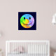 Dark blue poster with a face design in a rainbow of pastel colors.