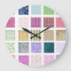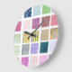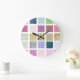 Rainbow tiled squares pattern large clock