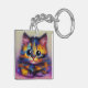 Rainbow Tortie Kitten Acrylic Keychain