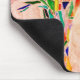 This unique mouse pad is decorated with a print of a rainbow coloured mosaic tree on a pale coral and beige background.