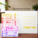 A straight to the point greeting card cover designed with this colourful rainbow typography multilingual Thank You word cloud in a variety of typeface styles. Fill in the template field with your message, remove all text for a blank inside or click customise to select a different typeface style, size, and colour for the inside message.