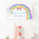 Rainbow Unicorn birthday party banner with hand painted unicorn face and rainbow. The text can be changed to suit your occasion.