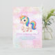 Rainbow Unicorn Birthday Party Invitation, features a sweet unicorn, and gold sparkle details. All the text is editable.