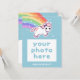Super cute rainbow unicorn birthday invitations that you can personalise with your own photo. Add your party details on the back.