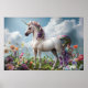Rainbow Unicorn in Flower Meadow – Fantasy Pastel Poster