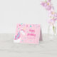 This fun birthday card features a cute whimsical unicorn design with colourful mane and flowers. There are also stars and confetti on a pink background. Personalise the front with a name and the inside with your special greeting message.