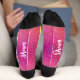 Unicorn lovers will adore these Rainbow Unicorn Pink Glitter Dream Socks. This trendy design has a pink faux glitter background and three pretty white unicorn faces on each sock. The unicorn has light shades of pink, purple, blue, yellow and orange rainbow hair and flowers on top of her head. Customised with the word "Dream" in white calligraphy script lettering on the bottom of each sock.