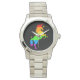 This eye-catching design features a majestic rainbow-coloured unicorn on an oversized silver bracelet watch. The vibrant unicorn stands out against the sleek, polished silver, symbolising freedom, magic, and individuality. Perfect for those who love to make a bold statement and embrace their unique, colourful spirit with pride. This watch is the ultimate accessory for anyone who believes in the power of dreams and self-expression.
