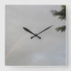 This awesome clock features a photograph of a rainbow taken just after a rain shower on a summer morning. The rainbow is just about to be engulfed by the surrounding clouds. It gets noticeably paler as it arcs towards a tree in the corner of the photo.