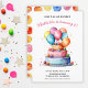 Rainbow Watercolor Cake & Balloons Girls Birthday Invitation