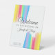 Rainbow Watercolor Elegant Welcome to Our Wedding Pedestal Sign