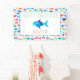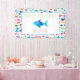 Rainbow Watercolor Blue Fish Under The Sea Rainbow Birthday Party Baby Shower Personalised Indoor or Outdoor Banner. Coordinate with more rainbow watercolor under the sea party supplies. Great for birthdays or baby showers. www.SamAnnDesigns.com