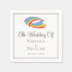 Pretty rainbow abstract wedding napkin with two beautiful arcs of colour above your ceremony date and names. This simple colourful wave art is perfect for a classy LGBTQ couple getting married in the afternoon.