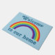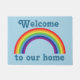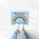 A doormat to welcome your visitors to your home, this lovely rainbow on a sky blue background is the perfect doormat for inside or outside.