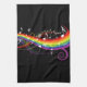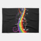 An elegant and stylish music design with white musical notes floating on a rainbow of swirling colours on a black background. Perfect for the musician or music lover.
