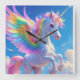 Rainbow Winged Prancing Unicorn Square Wall Clock