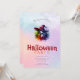 At the top of the invitation is a beautiful witch, radiating a mix of mystical elegance and Halloween charm. Dressed in a pink and purple witch's hat, her flowing hair dazzles in shades of green, blue, purple, pink, red, and orange. This colourful and enchanting figure adds a sense of magic and wonder, making it ideal for a party that’s both fun and full of Halloween spirit.