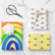 Happy rainbow wrapping paper for children's present, adults or even yourself! Two of the sheets have a repeated rainbow pattern. One sheet has a white background and one sheet has a happy yellow background. Make a bold and happy statement with the third sheet which has a single beautiful large rainbow on cheerful yellow background.