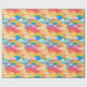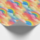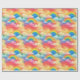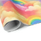 Bright and colourful patterns feature rainbows arching over fluffy clouds against a vibrant sky. The repeated motif creates a whimsical and cheerful backdrop.