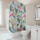 Rainbows and pink flamingos in tropical leaves and shower curtain