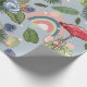 Rainbows and pink flamingos in tropical leaves and wrapping paper