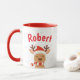 Enjoy a cosy, holiday beverage with Raindeer Santa Personalise Coffe Mug. This festive coffee mug features cute Raindeer Santa with snow falling on back. Personalise name and text.