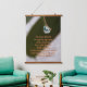 This naturally beautiful photographic wall tapestry with wood hanger captures the image of a raindrop that has captured the reflected image of a rubber tree plant. The water droplet on a leaf reflects the dark green leaves from which it is suspended in stark contrast to the light. This dramatic tapestry contains the poetry of the English poet William Blake in the poem "Auguries of Innocence": "To see a World in a grain of sand. And a Heaven in a wild flower. Hold Infinity in the palm of your hand. And Eternity in an hour."