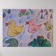 Take a walk down to the pond on a rainy spring day and you will be delighted to see cute little ducklings swimming among the colourful blue raindrops. The green frog sits on his lily pad enjoying the April shower and the pretty pink waterlily opens its petals to capture the moisture. Painted in vivid pastel shades of yellow, green and pink these adorable ducks will add a splash of spring colour to your world.