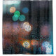 Raindrops on window, night city view through windo shower curtain