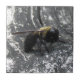 A bumble bee rests on a piece of weathered wood to dry after being caught in sun shower. This photo shows the tiny droplets on the wet bee.