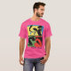 I give wanted to give this a 4 instead of a 5 because these Basic DARK T0shirts run unexpectedly SLIM or Narrow. Which is great if you do not have a potbelly, but I have a paunch. It isn't the shirt's fault that I've got a beer belly. The design and shirt itself is a quality cotton shirt. The color is more of a deep purple, but still a very pretty color. The Basic DARK T-shirts run a bit SLIMMER than the Basic Ts. The neck is a fraction narrower (or seems to be narrower) also. I'm a paunchy middle-aged woman and my neck is 12 inches (31cm) thick and the neckline fell about the same as in the photo of the man, and I had the desire to tug it a bit. So if you're a thick necked man or like loose shirts, be aware these are slimmer shirts. Once I get rid of my lockdown paunch it'll look great. The shirt washed well in cold water with no apparent bleeding. We don't have a dryer, so it hung dry. Did not shrink. Love the colors and the design. The design looks smaller on my shirt than it does on the model on-line. But still, it looks good on the shirt. The printing looks as it does on the model, just the size seems fractionally smaller. Washed garment in cold water, hung dry and design appeared unaffected.