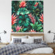 Immerse yourself in the lush beauty of the rainforest with this vibrant watercolor artwork. Featuring exotic green and pink tropical leaves against a dark backdrop, it captures the essence of nature's untamed elegance. Perfect for adding a bold, botanical touch to any space.