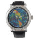 Rainforest Radiance" - Stained Glass Parrot Wall Watch