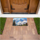 A view of Mount Rainier through a break in a grouping of pine trees.