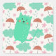 Raining Cats items for the home, office, and personal use with rain, umbrellas, polka dotted teal clouds, umbrellas, and a teal smiling cat, a cute, fun, cheery, whimsical design for cat lovers of every age!